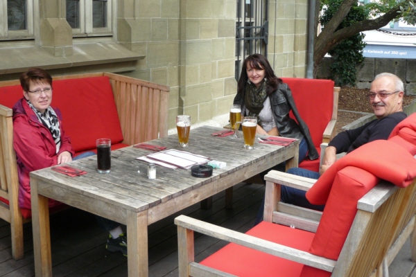 Die Ausflügler auf dem Viehmarktplatz unter der Friedensbrücke in Würzburg.
