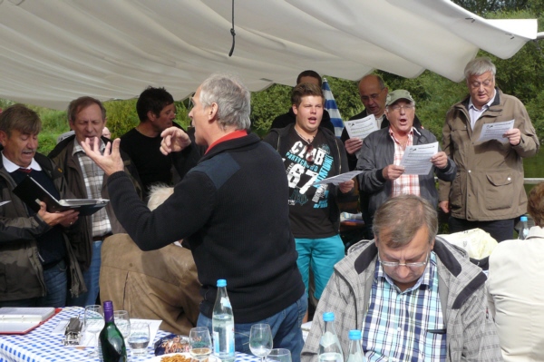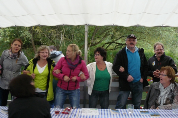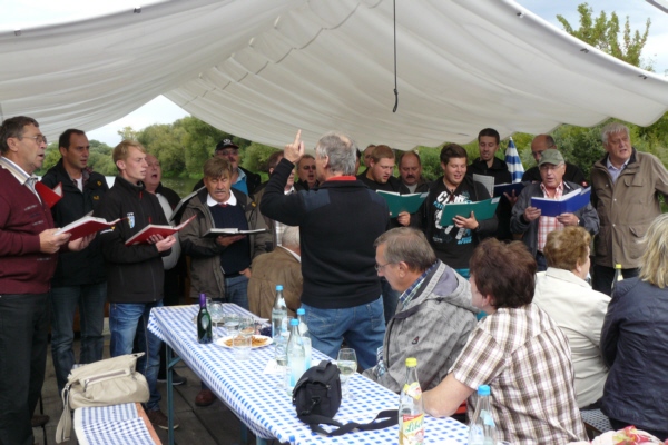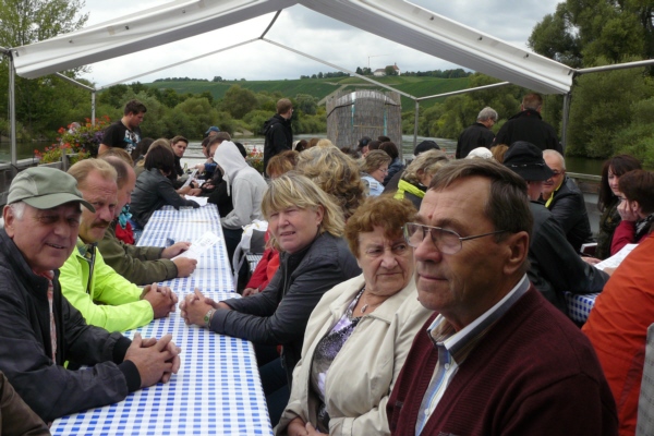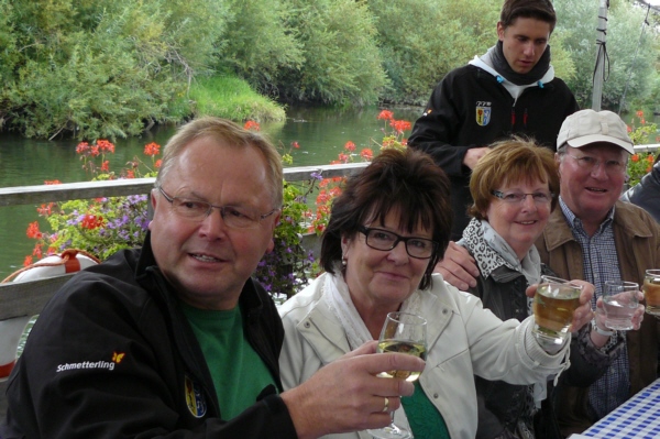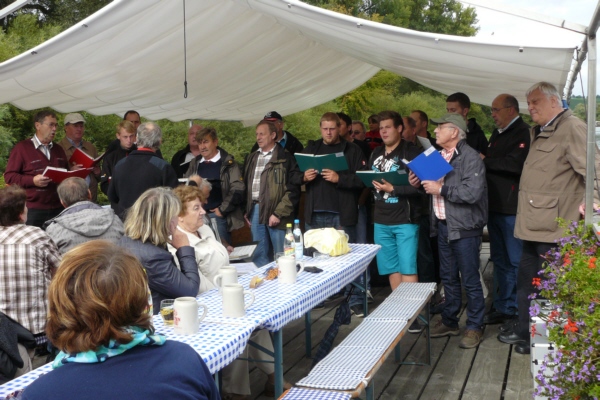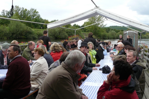 Der Tagesausflug der Freiwilligen Feuerwehr und des Gesangverein "Gemütlichkeit" Geschwand führte die 67 Teilnehmer am 23. August 2014 zuerst nach Würzburg. Dort besichtigten die Teilnehmer die Altstadt auf eigene Faust. Nachdem sich die Ausflügler in verschiedenen Lokalen gestärkt hatten ging die Reise weiter nach Astheim zur Ablegestelle für die romantischen Floßfahrt auf dem Altmain. Bei kühlen Temperaturen um 15°C und gelegentlichen Schauern trieb das Floß 3½ Stunden lang die Mainschleife hinunter nach Gerlachshausen. Dort warteten schon zwei Busse auf die Flößer um sie zum Hofschoppenfest nach Wohnau bei Knetzgau zu bringen.