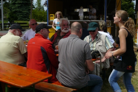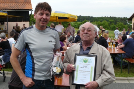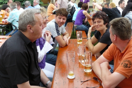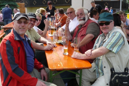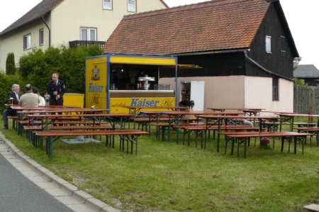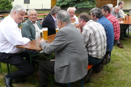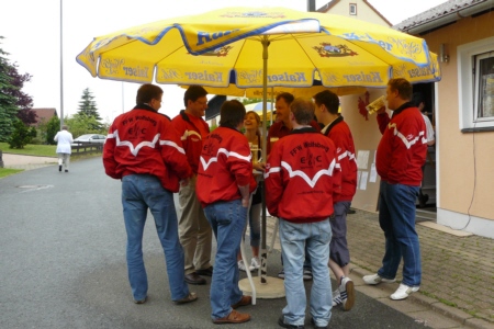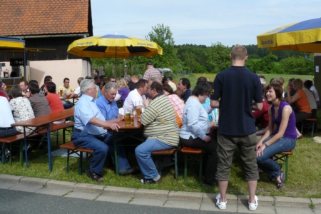 | Am 21. Mai 2009 hielt die FFW Geschwand bei anfangs sonnigen Wetter, einem kurzen Schauer um die Mittagszeit, einem sehr sonnigen Nachmittag und einen abkühlenden Schauer gegen Abend ihre traditionelle Grillparty am Feuerwehrhaus ab. Die Veranstaltung begann mit einem Gottesdienst (an den auch die Fahnenabordnung der FFW teilnahm), anschließend trafen sich die Freunde der Feuerwehr bei Weißwürsten mit Brezen und Weißbier zum Frühschoppen. Zu Mittag gab es die weit über die Geschwander Grenzen hinaus bekannten gegrillten Schweinshaxen. Am Nachmittag gab es Kaffee und Kuchen, (der Erlös kam wie alle Jahre der Behindertengruppe zu Gute). Die Kameraden der FFW Obertrubach zeigten den Gästen ihr neues Löschfahrzeug LF 10/6. Danach wurde bis in die späten Abendstunden gefeiert. |
