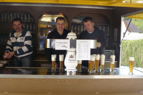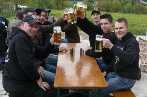 | Am 13. Mai 2010 hielt die FFW Geschwand bei anfänglichem trockenen, ab 16 Uhr regnerischem Wetter ihre traditionelle Grillparty am Feuerwehrhaus ab. Viele benachbarte und befreundete Wehren ließen sich nicht von den schlechten Wetterbedingungen abhalten und ließen es sich beim Frühschoppen bei Weißwürsten mit Brezen und Weißbier gutgehen. Zu Mittag gab es die weit über die Geschwander Grenzen hinaus bekannten gegrillten Schweinshaxen. Am Nachmittag gab es Kaffee und Kuchen, (der Erlös kam wie jedes Jahr der Behindertengruppe zu Gute). Danach wurde bis in die späten Abendstunden gefeiert. |