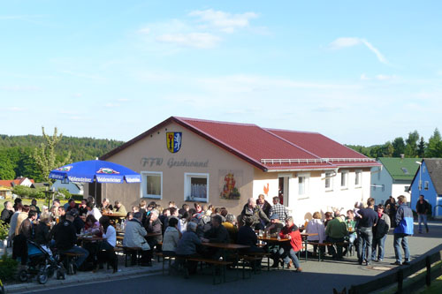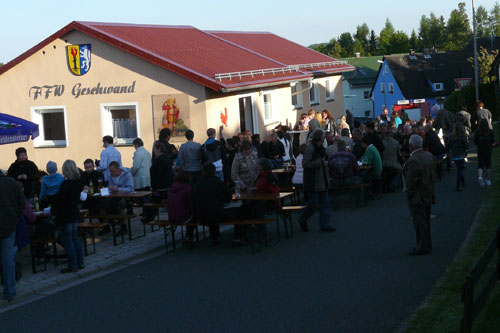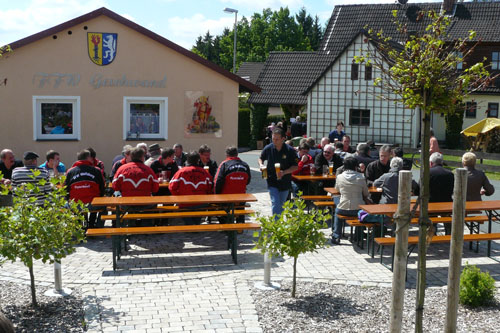 | Am 17. Mai 2012 hielt die FFW Geschwand am Feuerwehrhaus ihre traditionelle Grillparty ab. Bei anfänglich noch etwas kühlen Temperaturen jedoch im Tagesverlauf immer