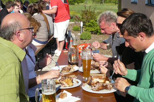 über die Geschwander Grenzen hinaus bekannten gegrillten Schweinshaxen.