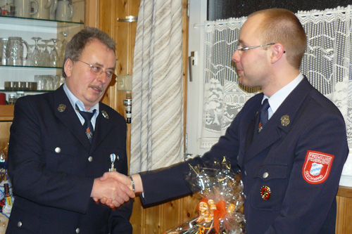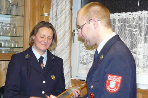 | Am 06. Januar 2011 hielt die freiwillige Feuerwehr Geschwand ihre Jahreshauptversammlung im Schulungsraum des Feuerwehrhauses ab. Mit 40 Besuchern war sie eine gut besuchte Versammlung. Im Rahmen der Versammlung wurden die Feuerwehrkameradin Sabine Seyschab und der Feuerwehrkamerad Michael Zitzmann für 25 Jahre, die Feuerwehrkameraden Hans (Adam) Brendel und Günther Steinhäußer für 40 Jahre, Hans Wiegärtner für 50 Jahre und Siegfried Gmelch für 60 Jahre Mitgliedschaft in der FFW Geschwand geehrt. Ebenfalls im Rahmen der Jahreshauptversammlung wurde die Bronze-Auszeichnung der Kameradinnen und Kameraden nachgeholt, die Aufgrund eines Mangels an Bronze-Abzeichen bei der Leistungsprüfung am 16. Oktober 2010 nicht vorgenommen werden konnte. |