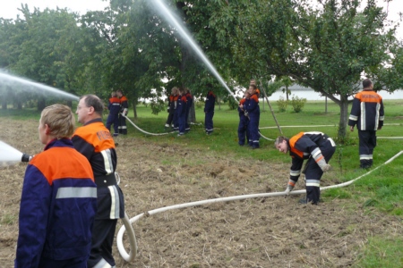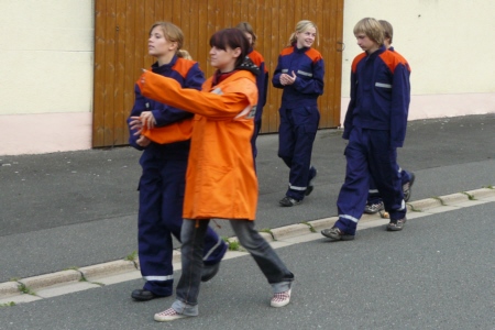 Als Betreuer kümmerten sich Kommandant Thomas Haas, Adjutant Christian Alt, 1. Vorsitzender Andreas Eckert, Jugendbeauftragter Jochen Arzt und die Feuerwehrkameradin Christina Schuhmann um die jugendlichen Feuerwehrkameradinnen und Kameraden