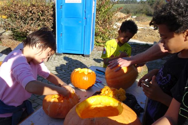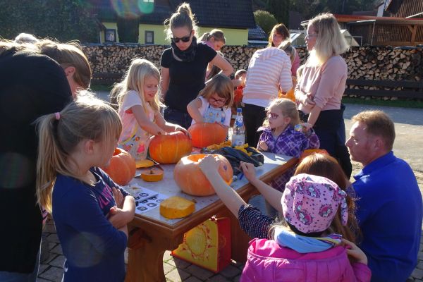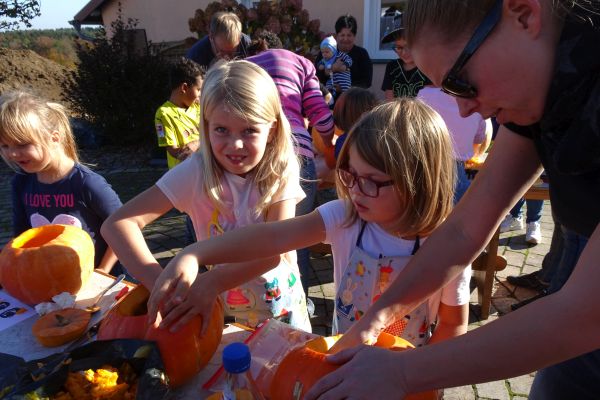 Bei traumhaftem Herbstwetter und Themperaturen über 20°C trafen sich am 26. Oktober 2019 die FFW-Löschzwerge und die FSV-Kids mit ihren Eltern am Feuerwehrhaus zum Aushöhlen und Schnitzen ihrer Kürbisse für Halloween.