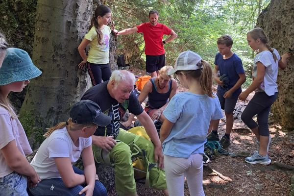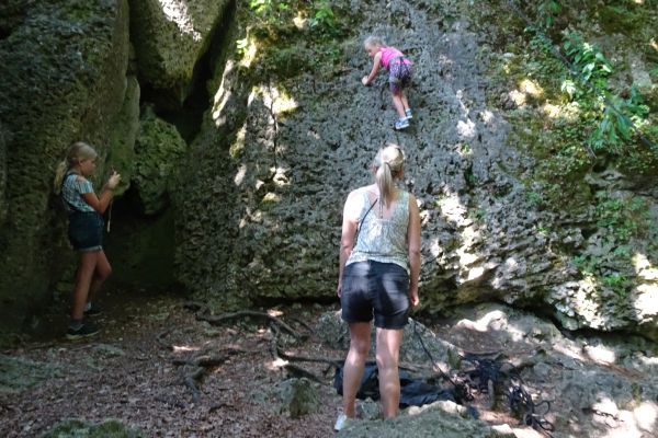 | Die Betreuerinnen Sonja Dresel und Julia Nürnberger luden die Kindergruppen der FFW- und des FSV Geschwand am 07. Juli 2023 zu einem Schnupperklettern an den Wolfstein bei Bärnfels ein. Unter der fachmännischen Anleitung des passionierten Kletterers Herwig Sedlmayer und der früheren Europameisterin im Lead-Klettern, Katrin Sedlmayer wurden die Kinder proffesionell an das Klettern herangeführt. | |||||