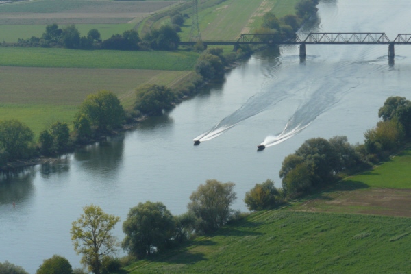 Die Ausflügler blicken vom Bogenberg auf die Donau