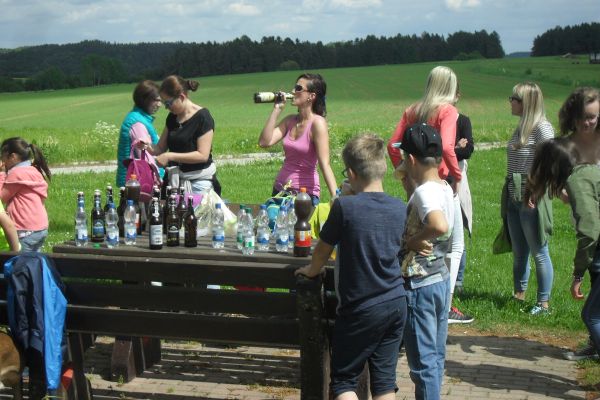 Geschwand. Die Wanderung führte am "Rutschstein" vorbei, durchs "Öbere Holz" den Rundwanderweg Richtung Affalterthal, durchs "Flins" Richtung Bieberbach, dann durch Rothenhof, weiter über Linden Richtung Krachershöhe. Am alten Sportplatz in Geschwand durften sich die Wanderfreunde noch einmal stärken bevor sie sich auf die restlichen Meter bis direkt zur Grillparty der FFW Geschwand machten,