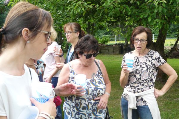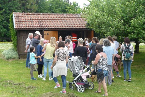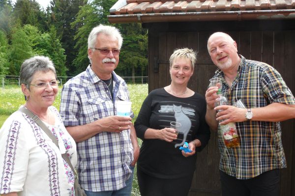 Die Wanderfreunde bei der Rast an der Hütte der Hölzelein