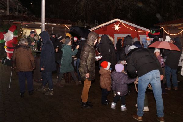 | Am 06. Dezember 2025 bauten die Mitglieder des FSV Geschwand bereits zum 13. Mal die Buden für die traditionelle „Geschwander Weihnacht“ auf dem Bürgerplatz auf. Eingestimmt auf die Weihnachtszeit wurden die Besucher mit einem von Markus Habermann zelebrierten Wortgottesdienst, der von der Singgruppe des FSV Geschwand feierlich umrahmt wurde. Bei zunächst trockenem Wetter, später einsetzendem Regen und angenehmen Temperaturen knapp über dem Gefrierpunkt verbrachten die zahlreichen Besucher auf dem sehr gut besuchten Weihnachtsmarkt einige besinnliche vorweihnachtliche Stunden. Für das leibliche Wohl war mit Glühwein, fränkischen Bratwürsten und selbstgebackenen Waffeln bestens gesorgt. Die musikalische Umrahmung übernahmen der Posaunenchor Affalterthal sowie der Gesangverein „Gemütlichkeit“ Geschwand, die mit weihnachtlichen Klängen die Gäste stimmungsvoll auf die bevorstehende Weihnachtszeit einstimmten. Besonders groß war die Freude bei den kleinen Besuchern über das Erscheinen des Nikolauses, der den Weihnachtsmarkt zu einem besonderen Erlebnis machte. |