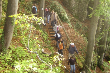 Am 03. Oktober 2009 führte die Herbstwanderung des FSV Geschwand die Wanderfreunde durch Gößweinstein ins Wiesenttal zur Stempfermühle. Bei herrlichem Herbstwetter fuhren die Wanderfreunde mit dem Bus nach Gößweinstein. Von dort wanderten sie unter der Führung unseres Wanderwarts Theo Schuhmann und dem Wanderwart des FSV Gößweinstein Reinhold Brendel durch und um Gößweinstein. Nach einer zwischenzeitlichen Stärkung mit Kaffee und Kuchen in der Gärtnerei von Konrad Schrüfer setzten die 44 Naturfreunde ihre Wanderung über die Burg Gößweinstein hinunter zur Stempfermühle fort. Dort kehrten sie zum Abschluss der Wanderung im Gasthof "Zur Stempfermühle" ein. Um 19:00 Uhr wurden die gestärkten, aber müden Wanderer wieder mit einem Bus von Schmetterling-Reisen abgeholt und nach Hause gebracht.