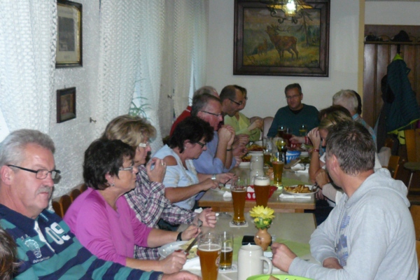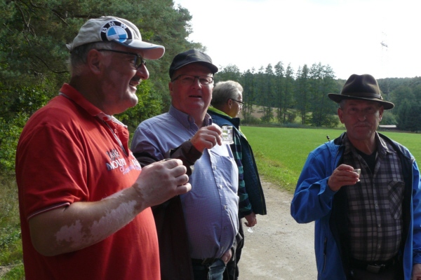 Zum zweiten Mal lud Georg Wiesheier aus Hirschaid und seine Familienanghörigen die FSV-Wanderfreunde zu sich ins Regnitztal ein. Bei anfänglichem Nieselwetter, jedoch immer besser werdenden Wetter führte Georg Wiesheier zusammen mit Wanderwart Werner Schmidt die 19 Wanderfreunde am 02. Oktober 2016  bei der traditionelle Herbstwanderung des FSV Geschwand die Wandergruppe durch seine Heimat. Nach Ankunft mit dem Bus in Sassanfahrt war am Schulgelände Start der Wanderung. Vorbei an der Siedlung Juliushof führte der Wanderweg dann durch die Sassanfahrter Flur zur Seußlinger Höhe. Hier wurde eine von der Familie Wiesheier organisierte und spendierte kleine Kaffeepause eingelegt. Auch hatte man auf dem Weg und von hier einen schönen Ausblick ins Regnitztal. Im Osten zog sich der gesamte Höhenzug von den Mainbergen, über die Friesener Warte bis hin zur Fränkischen Schweiz entlang. (Also von Bamberg bis zum Walberla.) Über den Rothensander Berg führte die Strecke dann wieder  ins Tal hinab. Durch den Wald bei Köttmannsdorf (hier wartete noch eine kleine Tankstelle auf die Wanderer), gelangte man dann zum Vereinsheim des Trachtenvereins "Ebrachtaler Köttmannsdorf". Hier ließ man dann die Wanderung bei einer Brotzeit ausklingen.