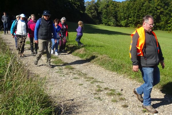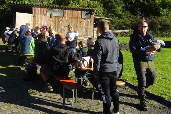 | Die FSV-Herbstwanderung 2025 startete am 3. Oktober bei traumhaftem Herbstwetter mit angenehmen 15 °C um 13:00 Uhr. Insgesamt machten sich fünf Kinder und 24 erwachsene Wanderfreunde von Geschwand an der Kreuzung aus auf den Weg in Richtung Großenohe. Die Strecke führte die FSV-ler zunächst Richtung Sorg. Dörfles blieb rechts des Weges liegen, bevor es weiter in Richtung Wolfsberg ging. Auf der sogenannten Wolfsberger Winterseite wanderte die Gruppe an Marthas Zeltplatz vorbei hinab nach Untertrubach, wo eine wohlverdiente Rast eingelegt wurde. Dort erwarteten die FSV-Verantwortlichen die Wanderfreunde bereits mit gut gekühlten Getränken. Gestärkt führte Wanderwart Adolf Zellmann die Gruppe auf die letzte Etappe nach Großenohe. Am Ziel angekommen, wurden die Teilnehmer mit Kaffee und Kuchen sowie frisch gegrillten Bratwürsten verwöhnt. In gemütlicher Runde ließen die FSV-ler den Nachmittag ausklingen, bevor es schließlich wieder auf den Heimweg ging. |