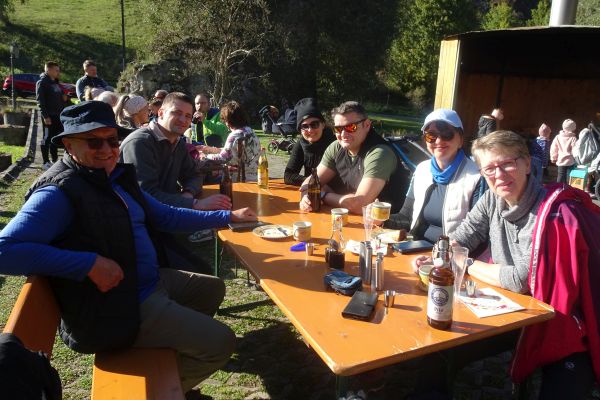 | Die Wanderfreunde in gemütlicher Runde in Großenohe |