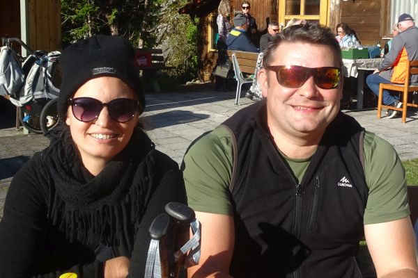 | Die Wanderfreunde bei einer Zwischenstation Richtung Wolfsberg |