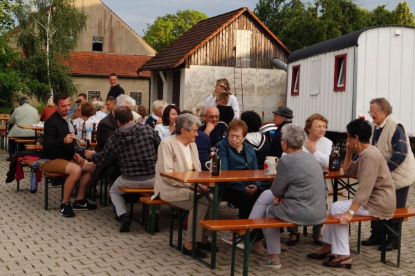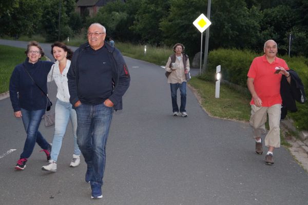 | Ein Teil der Gäste pilgerte vom Bürgerplatz hoch zur Feuerstelle des Johannisfeuers