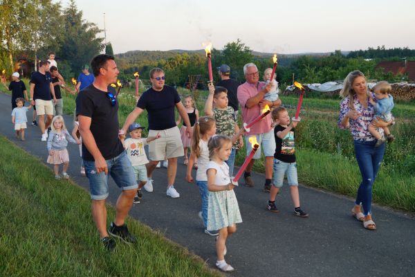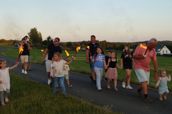 Die "Zündler" auf dem Weg zur Feuerstelle des Johannisfeuers