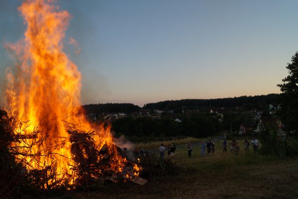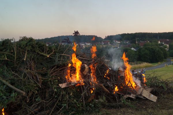 Das Johannisfeuer an gewohnter Stelle am Ortsende Richtung Bärnfels