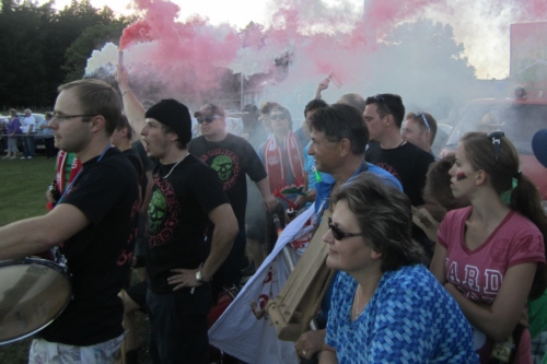 Nach dem Spiel waren die Mannschaften und die Fans wieder friedlich vereint.