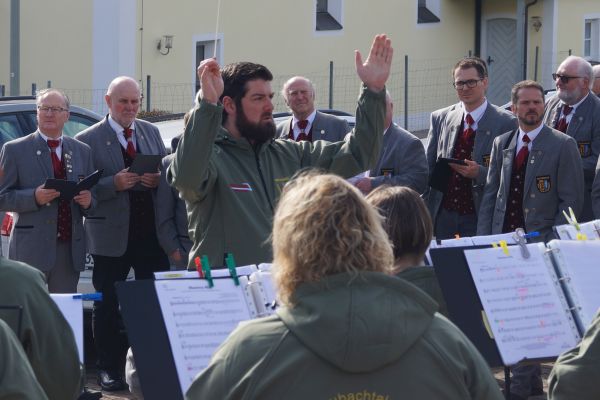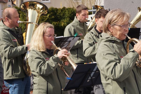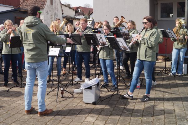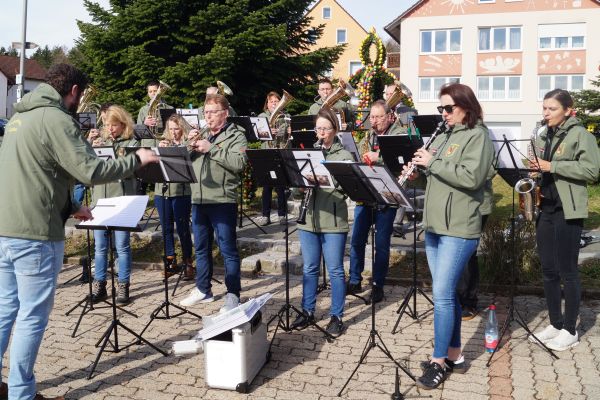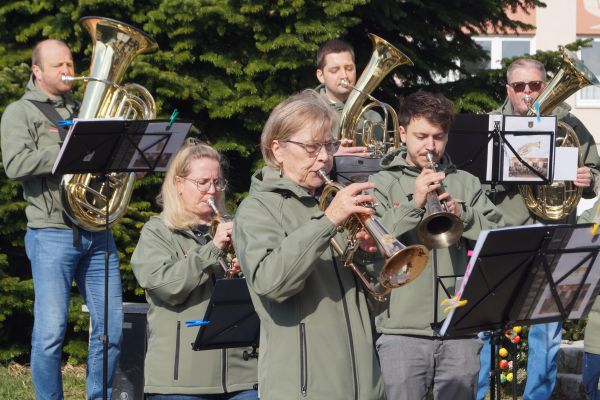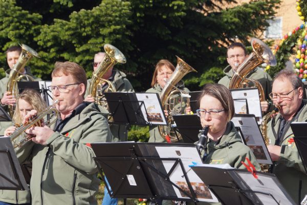 | Die "Spätlese" der Jugendblaskapelle Obertrubach nach dem Ostergottesdienst 2026 am Osterbrunnen in Geschwand |
