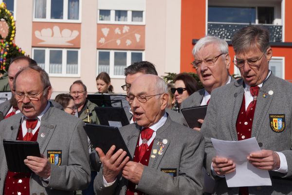 | Der Gesangverein Gemütlichkeit Geschwand nach dem Ostergottesdienst 2026 am Osterbrunnen in Geschwand |