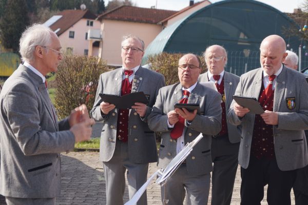 | Der Wortgottesdienst am Ostersonntag wurde von Markus Habermann zelebriert und mit vier Liedern vom Gesangverein "Gemütlichkeit" Geschwand umrahmt |
