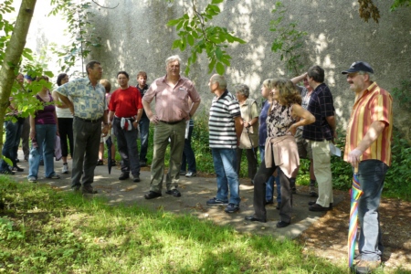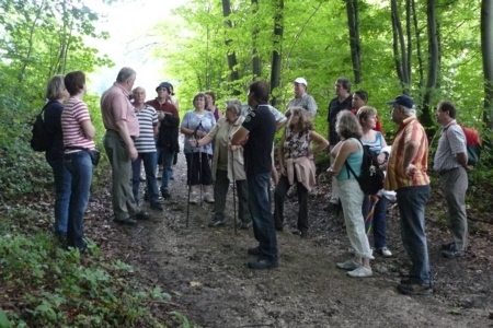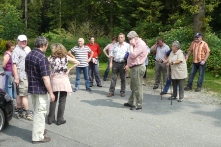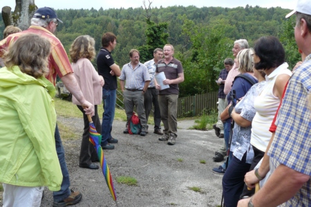 Die Wanderfreunde des Gesangvereins Gemütlichkeit Geschwand bei ihrer ersten Station an der Klagemauer beim Signalstein.