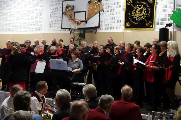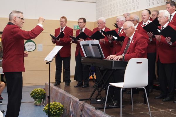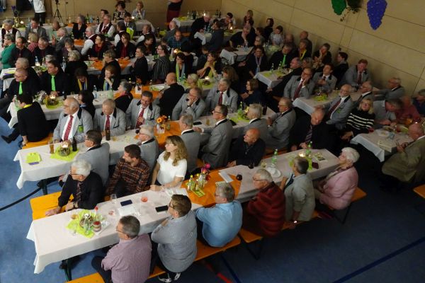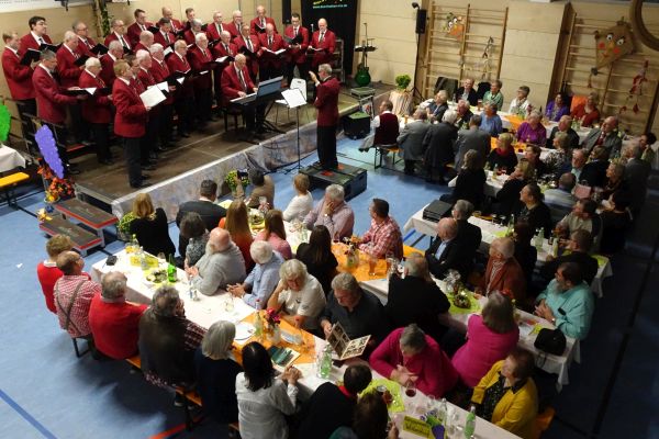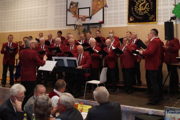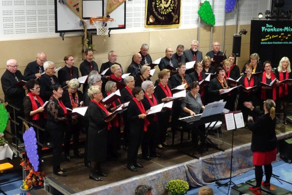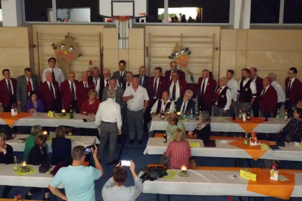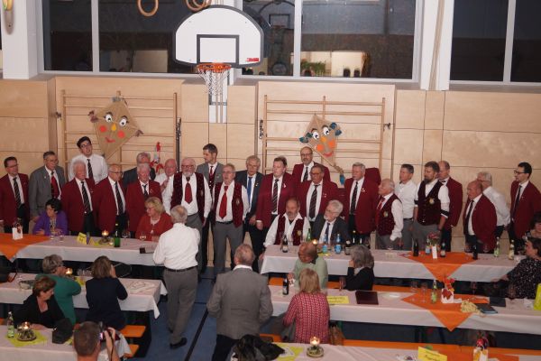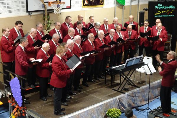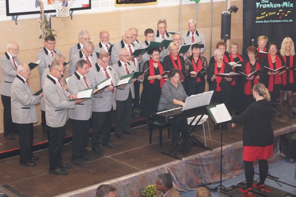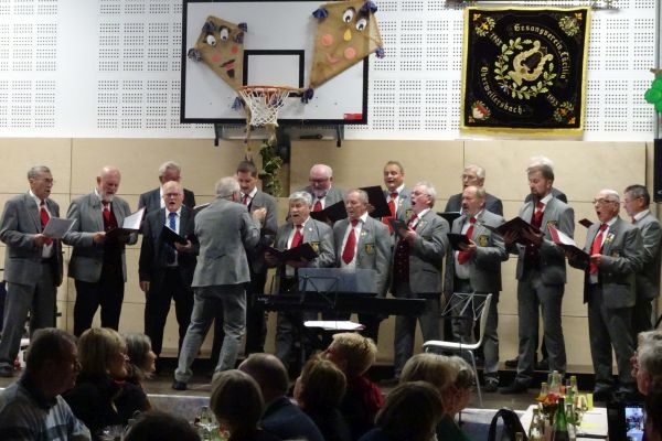 im Rahmen eines Weinfestes. In der entsprechend der Jahreszeit liebevoll geschmückten Turnhalle der Volkschule waren neben den Gastgebern noch der Gesangverein Harmonie Muggendorf, der Gesangverein Cäcilia Heroldsbach, der Gesangverein Liederkranz Leutenbach, der Männerchor Eintracht Reuth und natürlich der Gesangverein "Gemütlichkeit" Geschwand eingeladen. Nach dem offiziellen Teil feierten die Sängerinnen und Sänger mit den Gästen bei Wein und Gesang ein paar gemütliche Stunden in froher Runde.