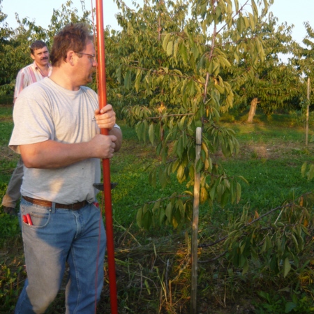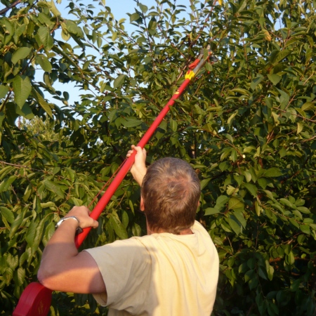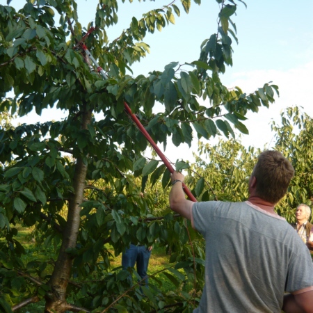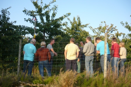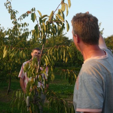 | Am 11. September 2009 hielt der Obst- und Gartenbauverein Geschwand einen Obstbaumschnittkurs in der Kirschenanlage in Geschwand ab. Bei herrlichem Frühherbstwetter erklärte Christoph Vogel den 15 Teilnehmer den Sinn und Zweck des Zurückschneidens der Äste und Triebe an Obstbäumen. |