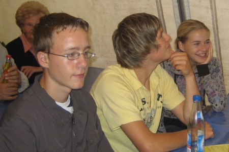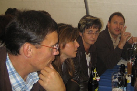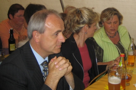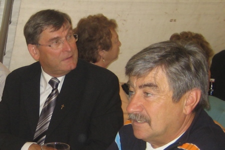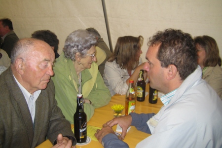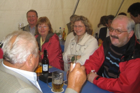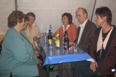 | Am 15. August 2008 luden die Geschwander Vereine am Bürgerplatz in Geschwand zum Patronatsfest 2008. Das Fest begann um 15:00 Uhr mit Kaffee und Kuchen. Um 18:00 Uhr zelebrierte Pfarrer Werner Wolf den Festgottesdienst, anschließend traf man sich, unterhalten von den Rathausmusikanten aus Affalterthal, bei gutem Essen und Trinken. Der Erlös dieser Veranstaltung wird zur Finanzierung des "Obertrubacher Kirchenbuckels", der lt. Aussage unseres Pfarrers Werner Wolf erhebliche Mehrkosten verursacht hat, gespendet. |