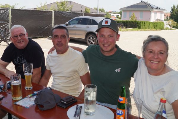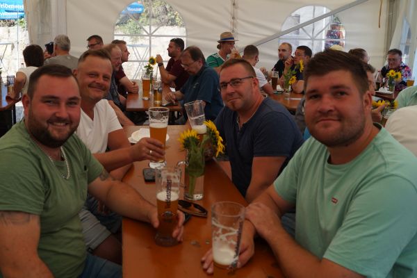 Im Anschluss fanden sich die Geschwander und Lindner Bürger auf dem Bürgerplatz zum traditionellen Frühschoppen mit Weißwürsten und Weißbier ein. Bei strahlendem Sommerwetter um die 30 °C verbrachten die Gäste dort gemütliche Stunden. Für die musikalische Umrahmung sorgte eine von Patrick Grellner zusammengestellte Blaskapelle, die beste Stimmung verbreitete.