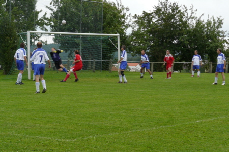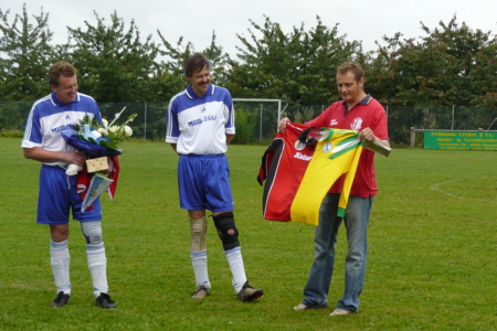 Feine Doppelpässe, gelungene Spielzüge und viele Tore wurden geboten, wobei sich vor allem zwei Akteure in der ersten Halbzeit besonders hervortaten: Natürlich Reini Eckert, der zunächst mit einem Fernschuss beide Pfosten gleichzeitig testete, ehe er mit einem satten 25-Meter-Schuss seinen Treffer markierte.