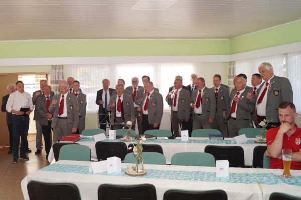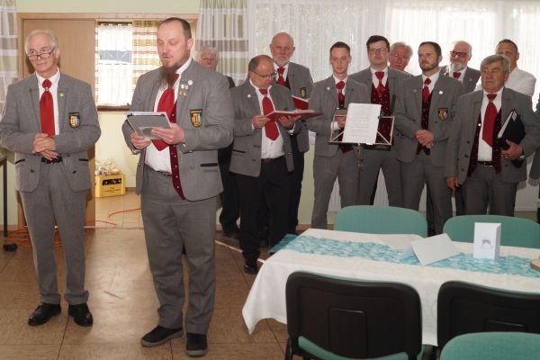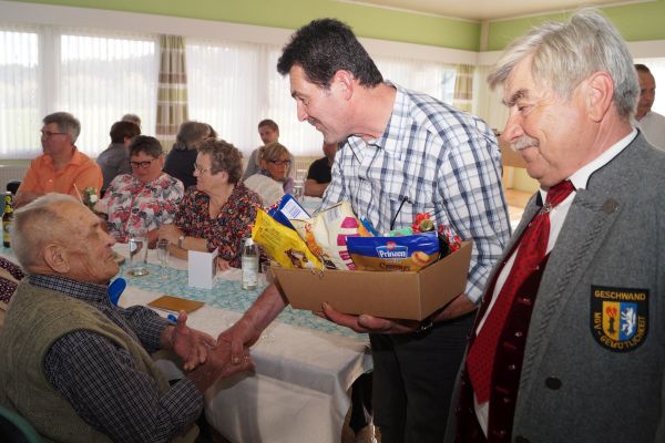 | Der Gesangverein "Gemütlichkeit" Geschwand gatulierte seinem Ehrenmitglied mit einem Ständchen |